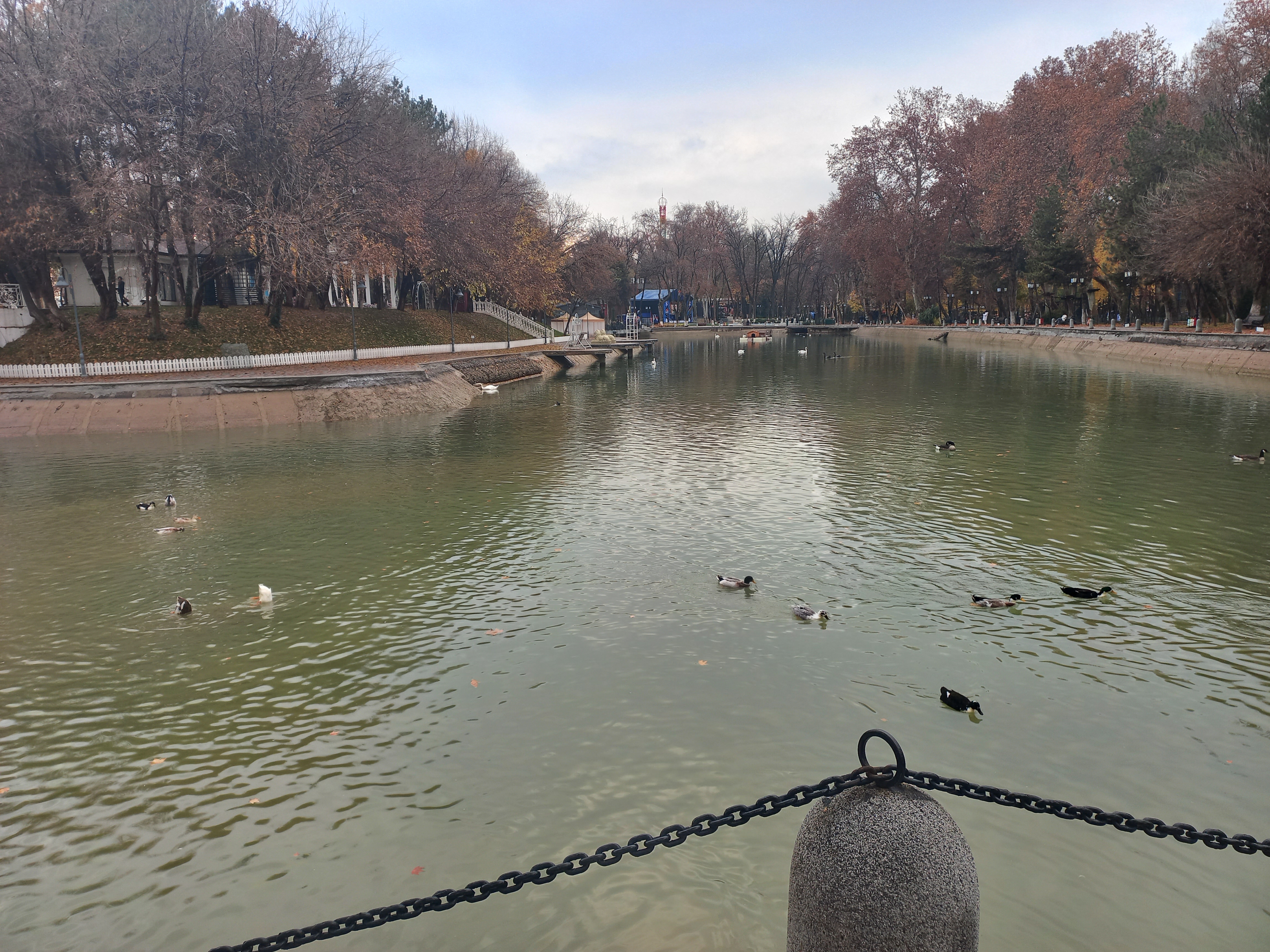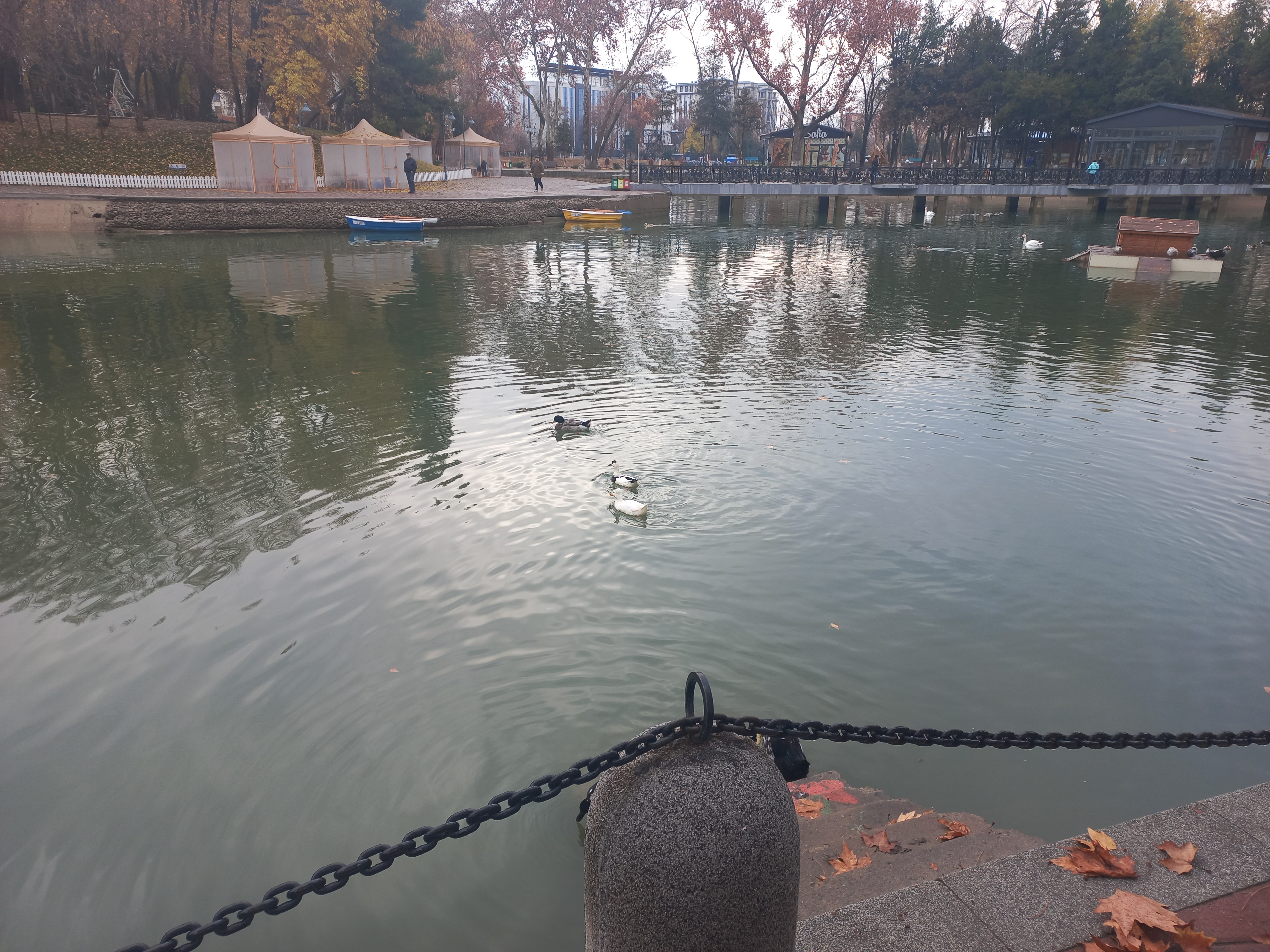 Қадағалаȳшы плакатлар әмелдеги: “жүзиў қадаған етилген", "балық тутыў, аң қылыў қадаған етилген", "шығынды таслаў қадаған етилген", "автотранспорт қуралларын жуўыў қадаған етилген"